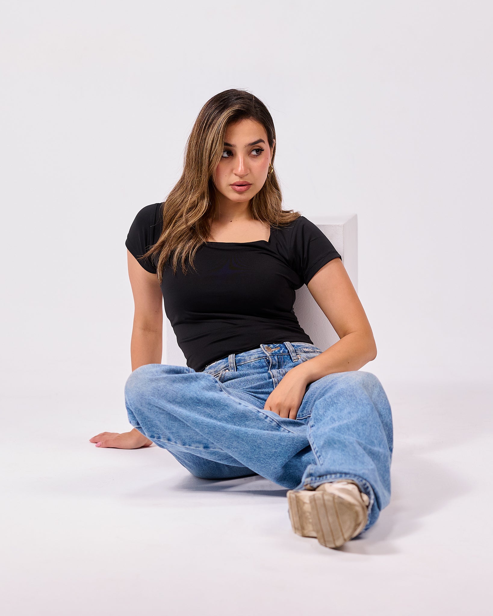 BLACK SQUARE NECK SHORT SLEEVE
